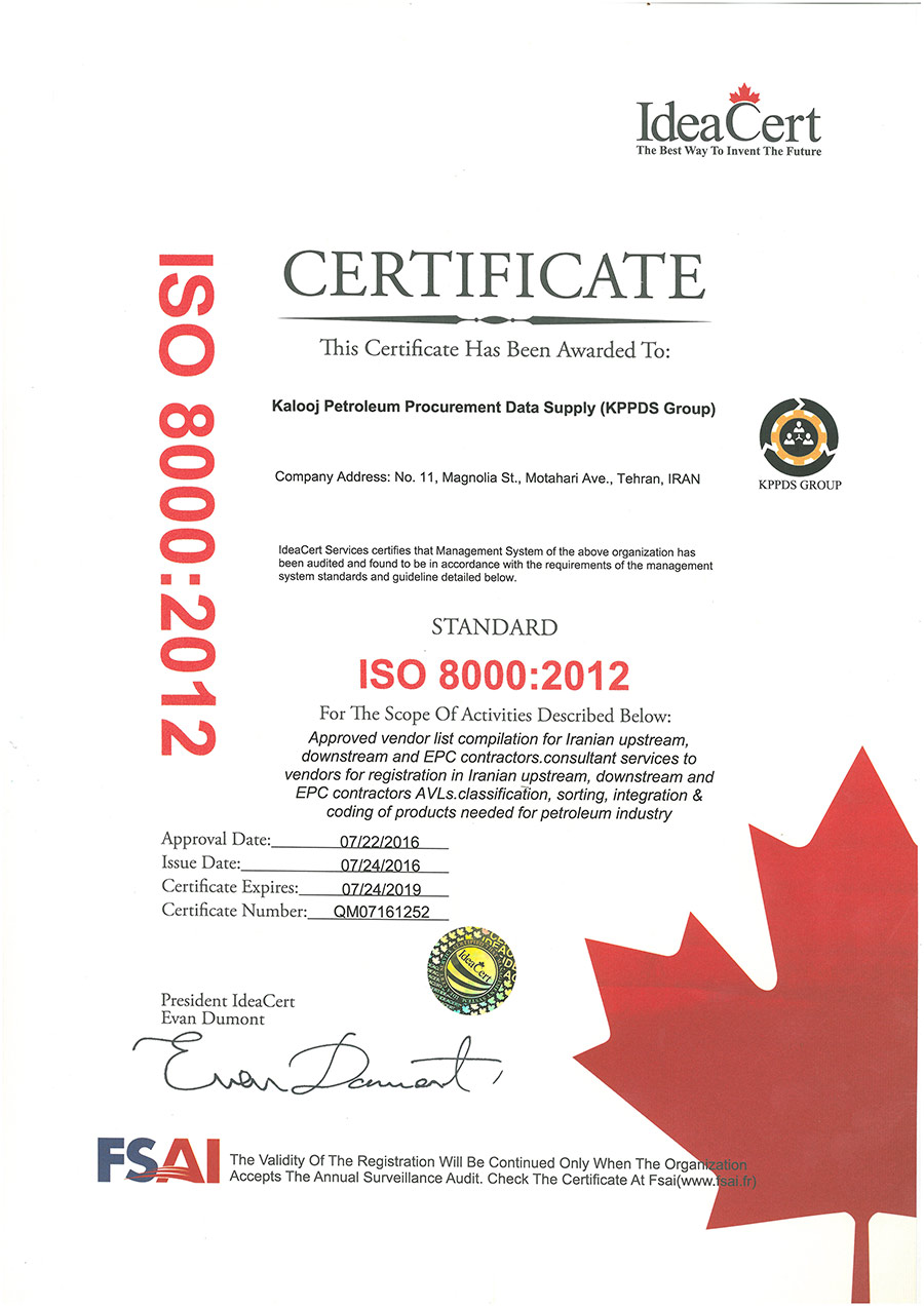 گواهینامه ها و استانداردهای پترو داده تامین کالوج